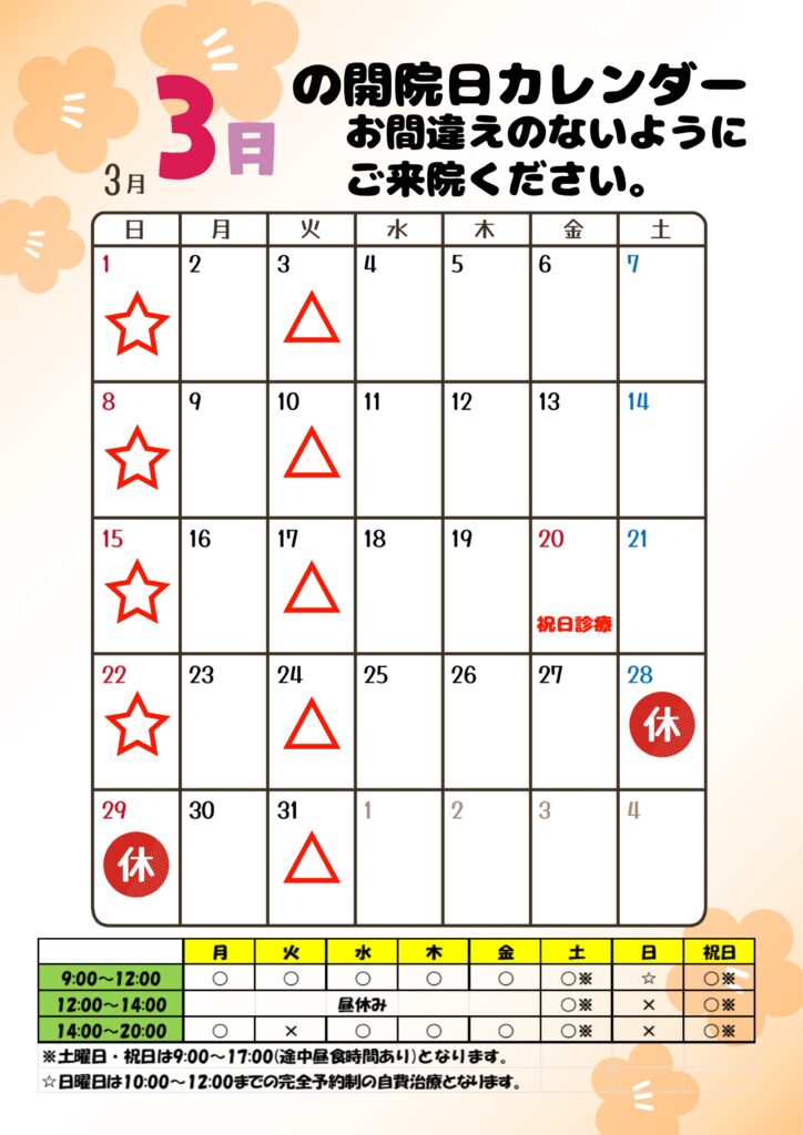 ・3月の休診日